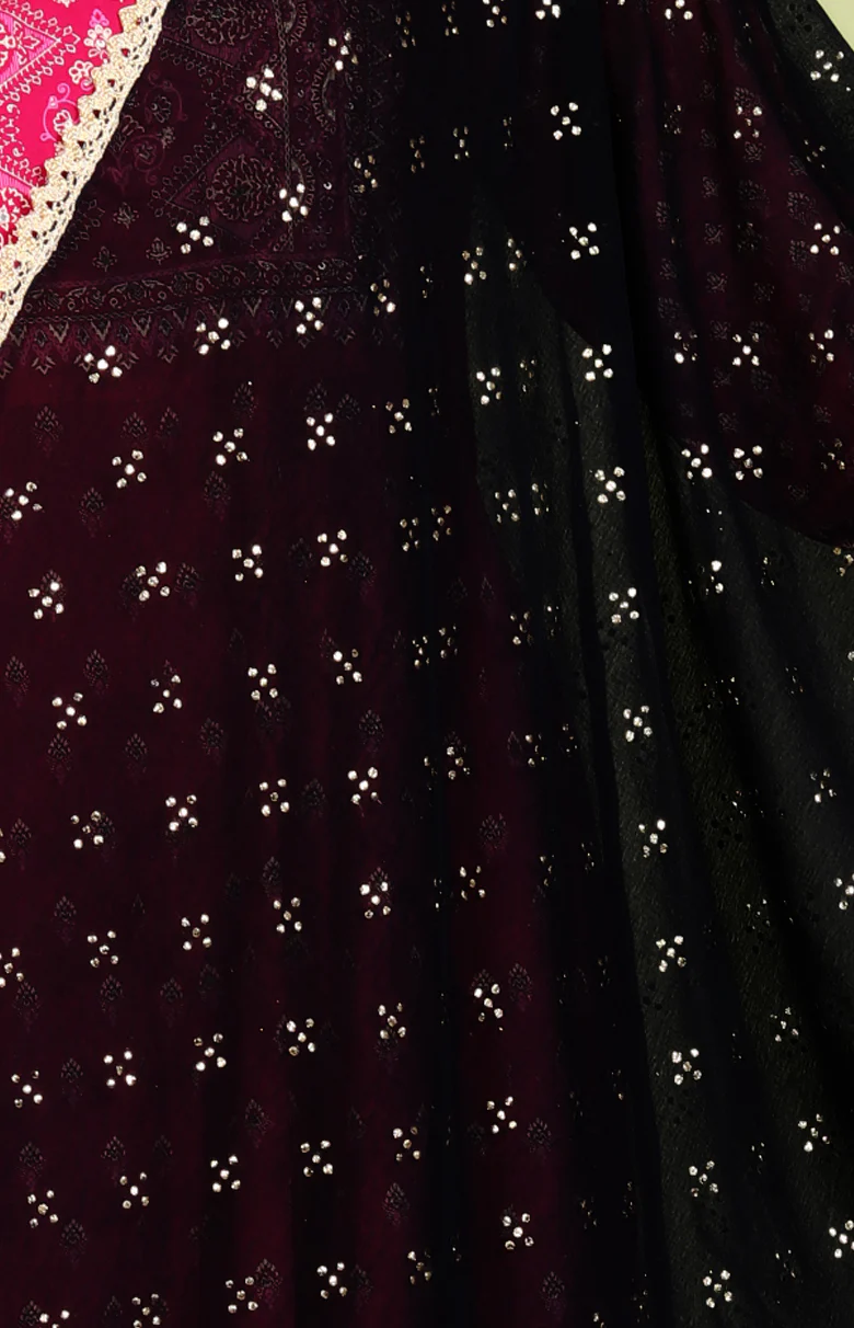 This stylish printed dupatta for women, made of lightweight black chiffon, enhances any look. Its warm fabric and elegant pattern make it a fashionable and comfortable layer. This dupatta is a closet necessity that is suitable for every occasion.