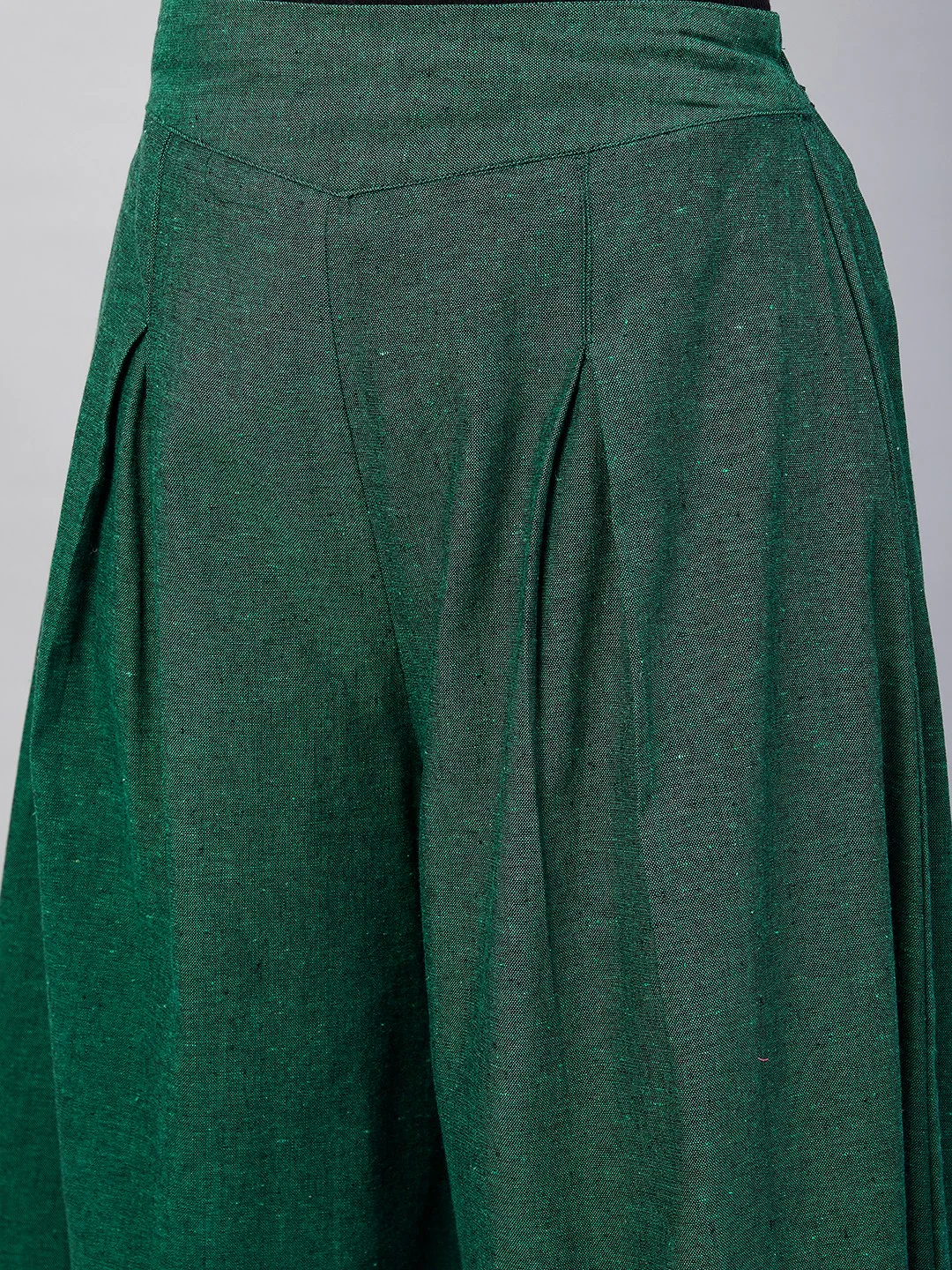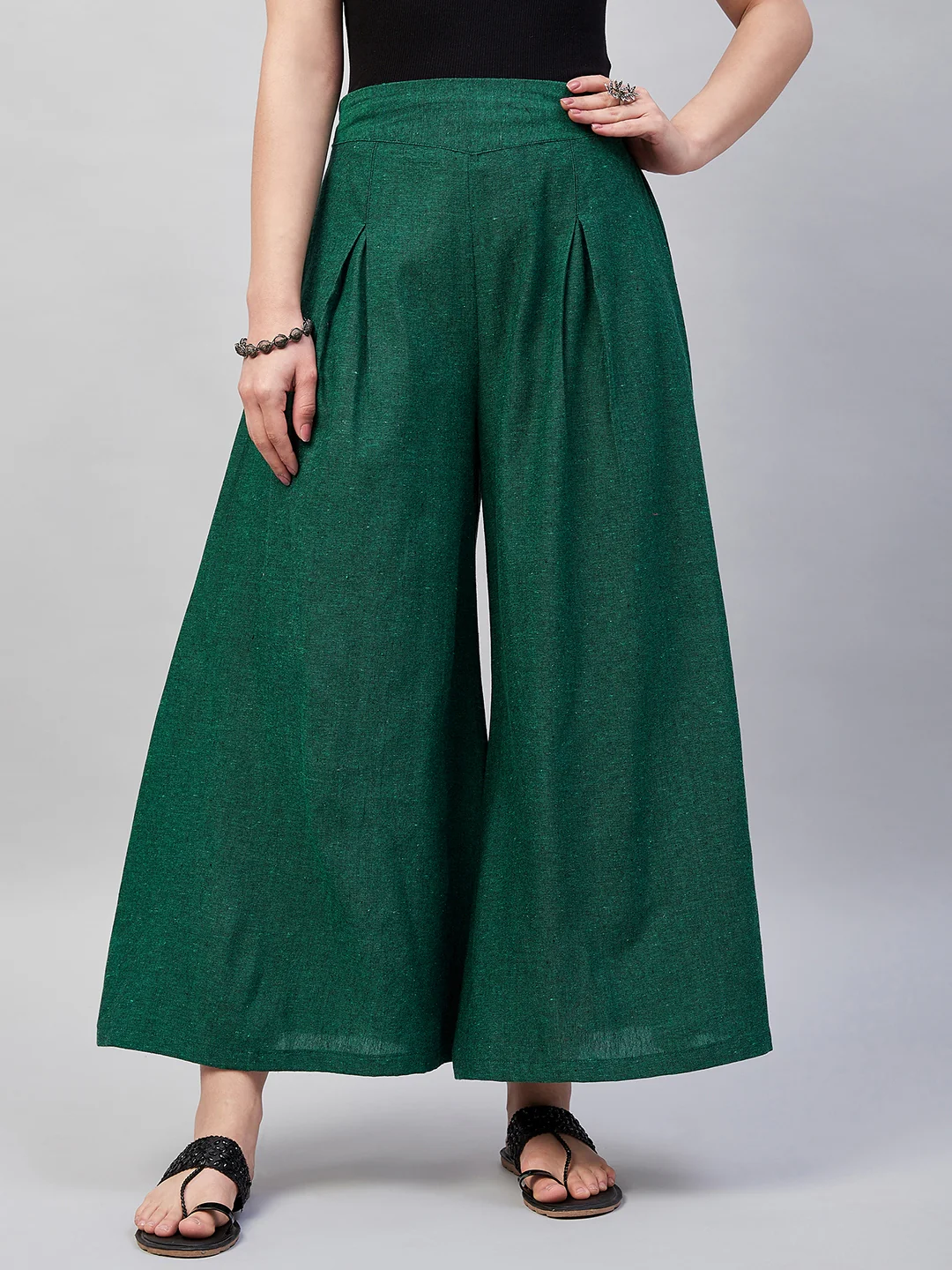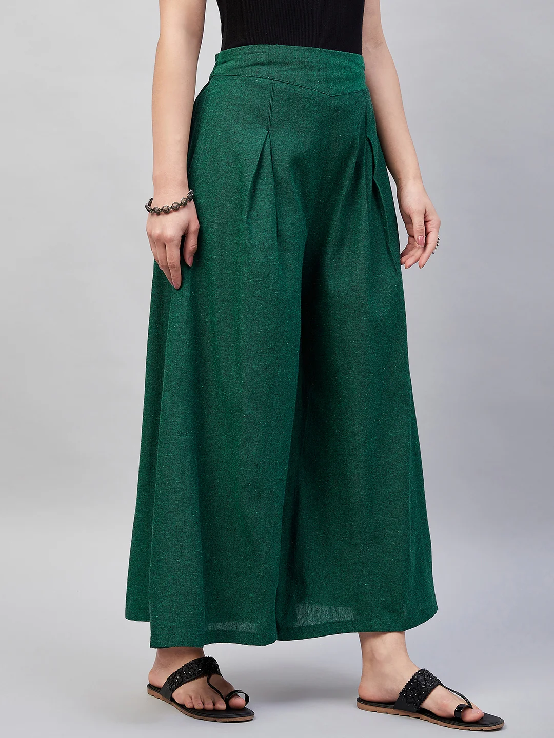 Embrace the spirit of summer with this pair of cool, gray-colored handloom palazzos. These cropped palazzos are made with original cotton fabric and showcase pretty front pleats.