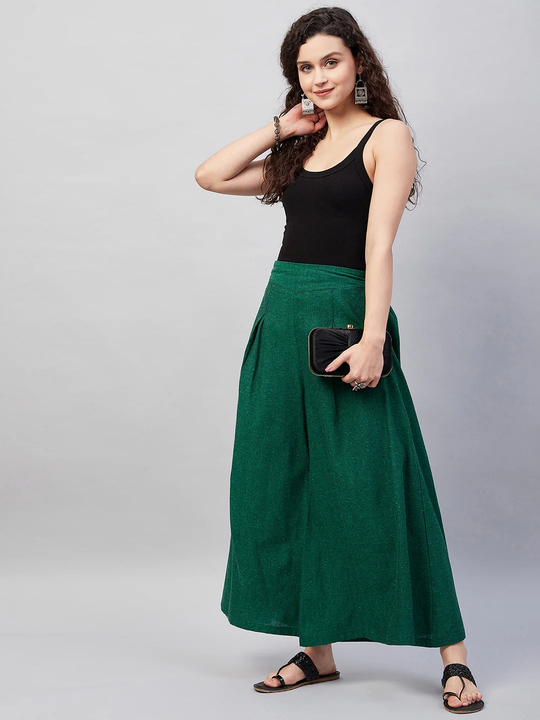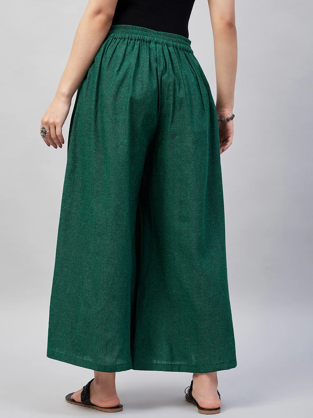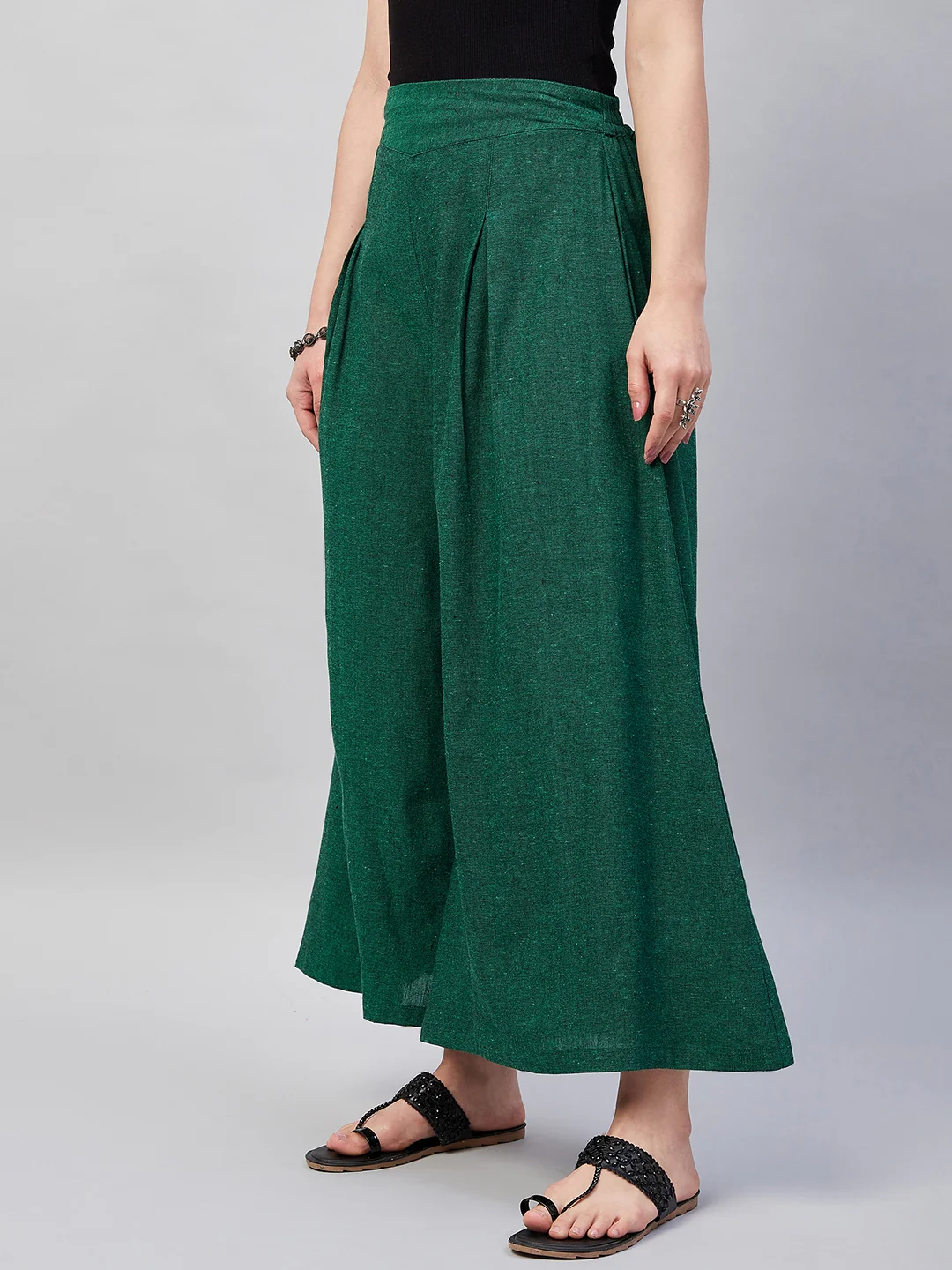 Embrace the spirit of summer with this pair of cool, gray-colored handloom palazzos. These cropped palazzos are made with original cotton fabric and showcase pretty front pleats.