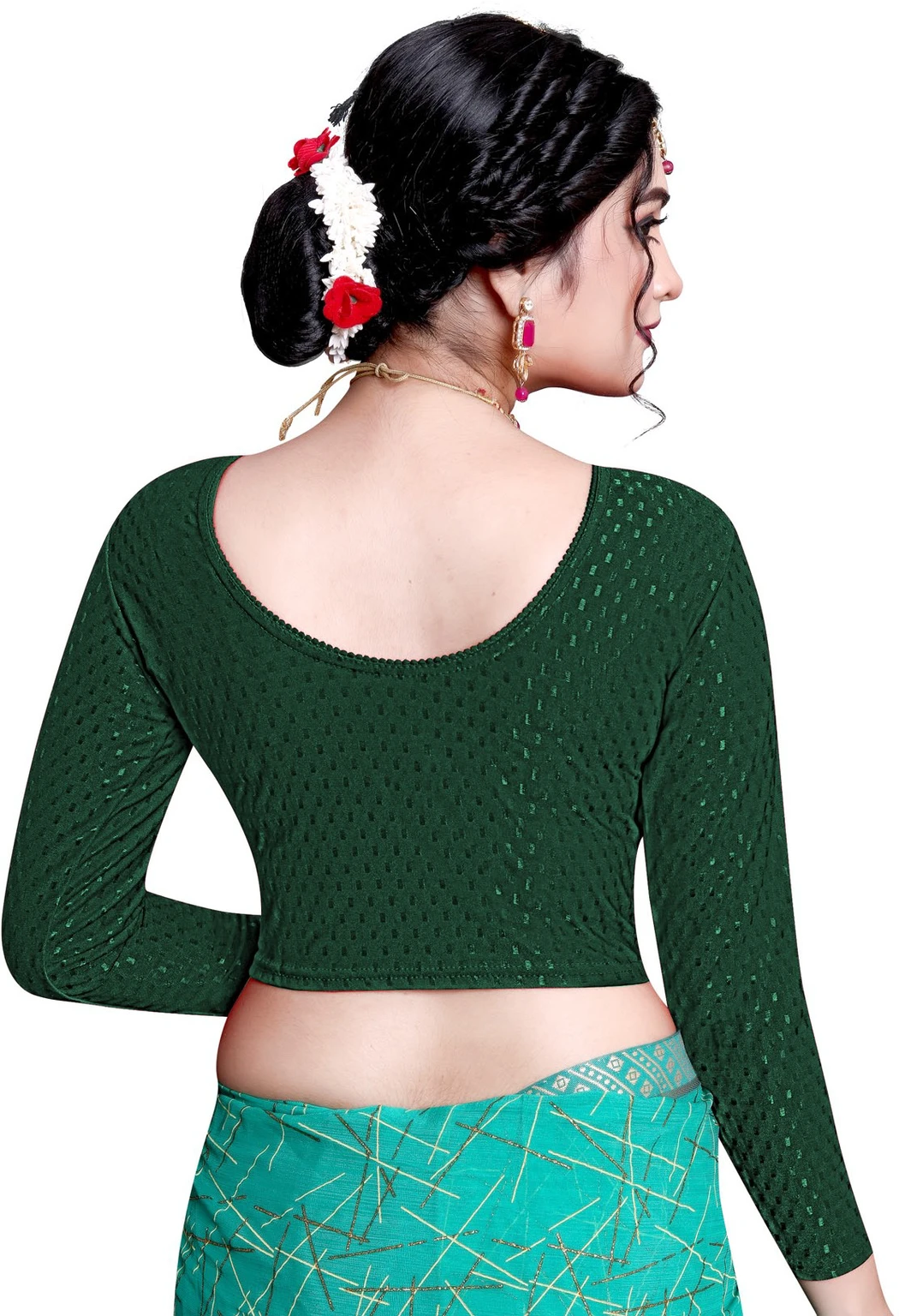 Elevate your wardrobe with this chic blouse crafted from stretchable Lycra fabric. The round neck design offers a classic and flattering silhouette, while the full sleeves provide a touch of elegance and versatility. The Lycra material ensures a comfortable, form-fitting shape that moves withyou, making it perfect for both casual and formal occasions. Embrace style and comfort with this must-have addition to your collection.