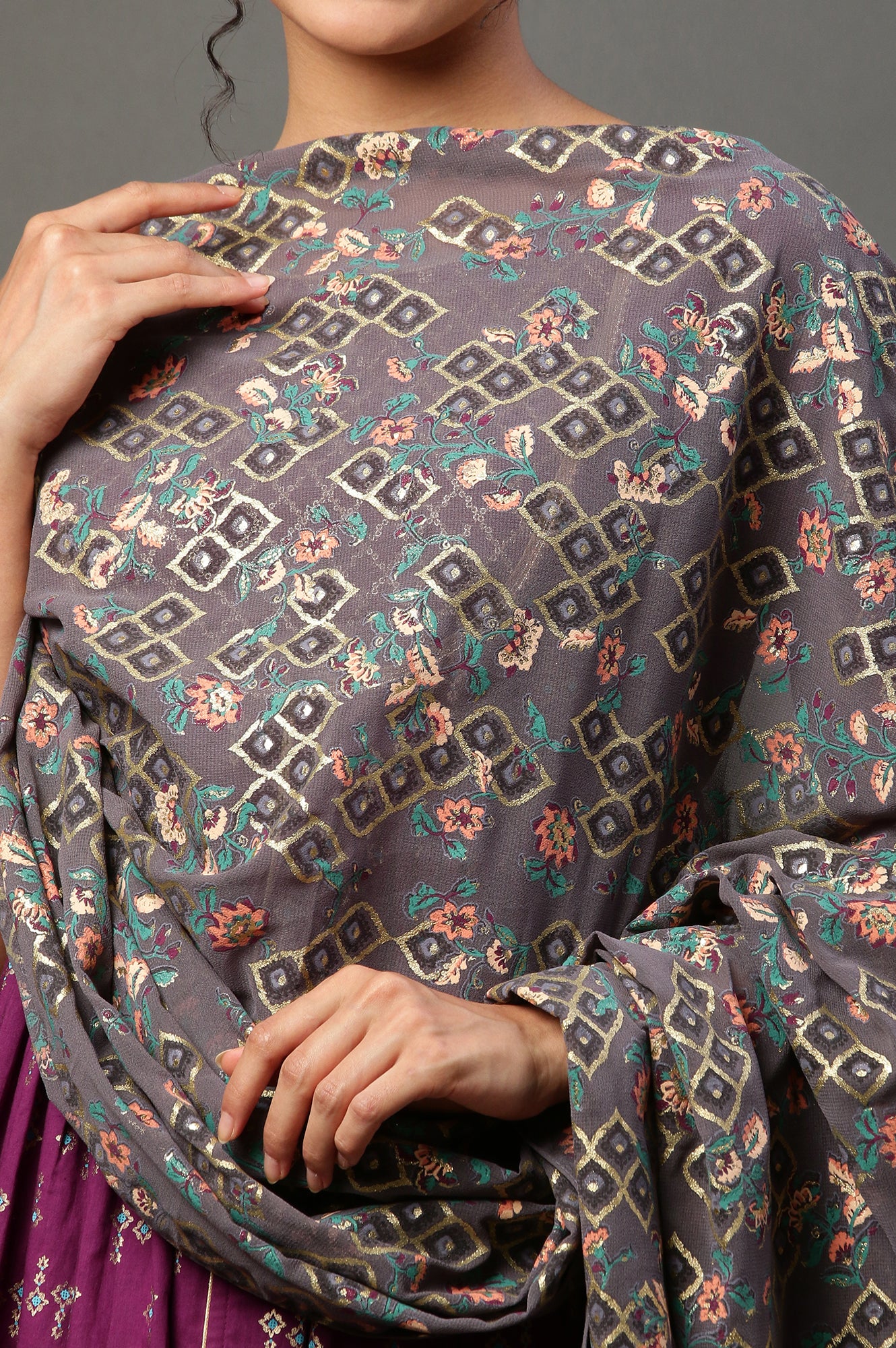 Grey Georgette Festive Dupatta