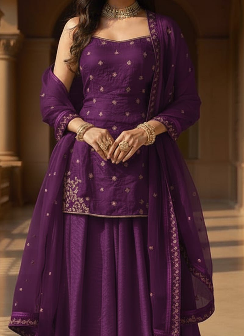 Elegantly crafted with intricate Schiffli embroidery, this lightweight palazzo offers a perfect blend of comfort and style. The silhouette is designed for effortless movement, along with two side pockets, making it a versatile addition to both casual and formal wardrobes. Ideal for adding a touch of traditional charm with modern flair.