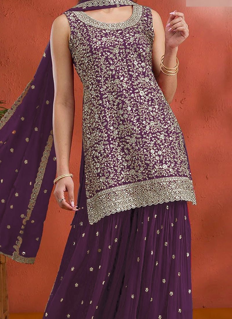 Red Georgette Embroidered Sequin Palazzo Set Festive Wear