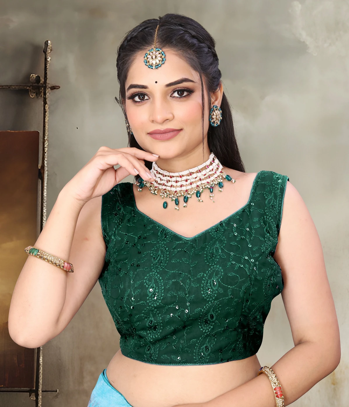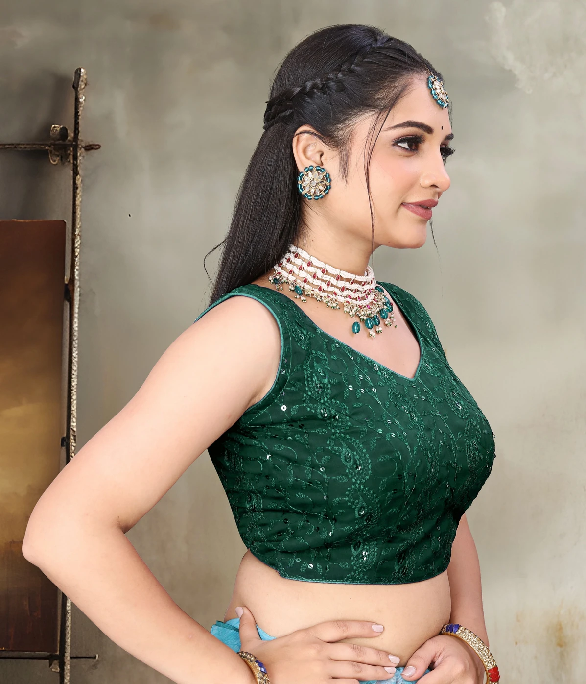 Georgette sleeveless embroidered readymade blouse. Madefrom premium quality fabric. This blouse is extremely comfortable and a great choice for any season or festive season. This blouse has high-quality fabric; you can wear itwith a solid coloured saree. Sizes are from -30 to 36, if thesize seems a little smaller, then you can get the fitting done asper your requirement, a margin is given for that.