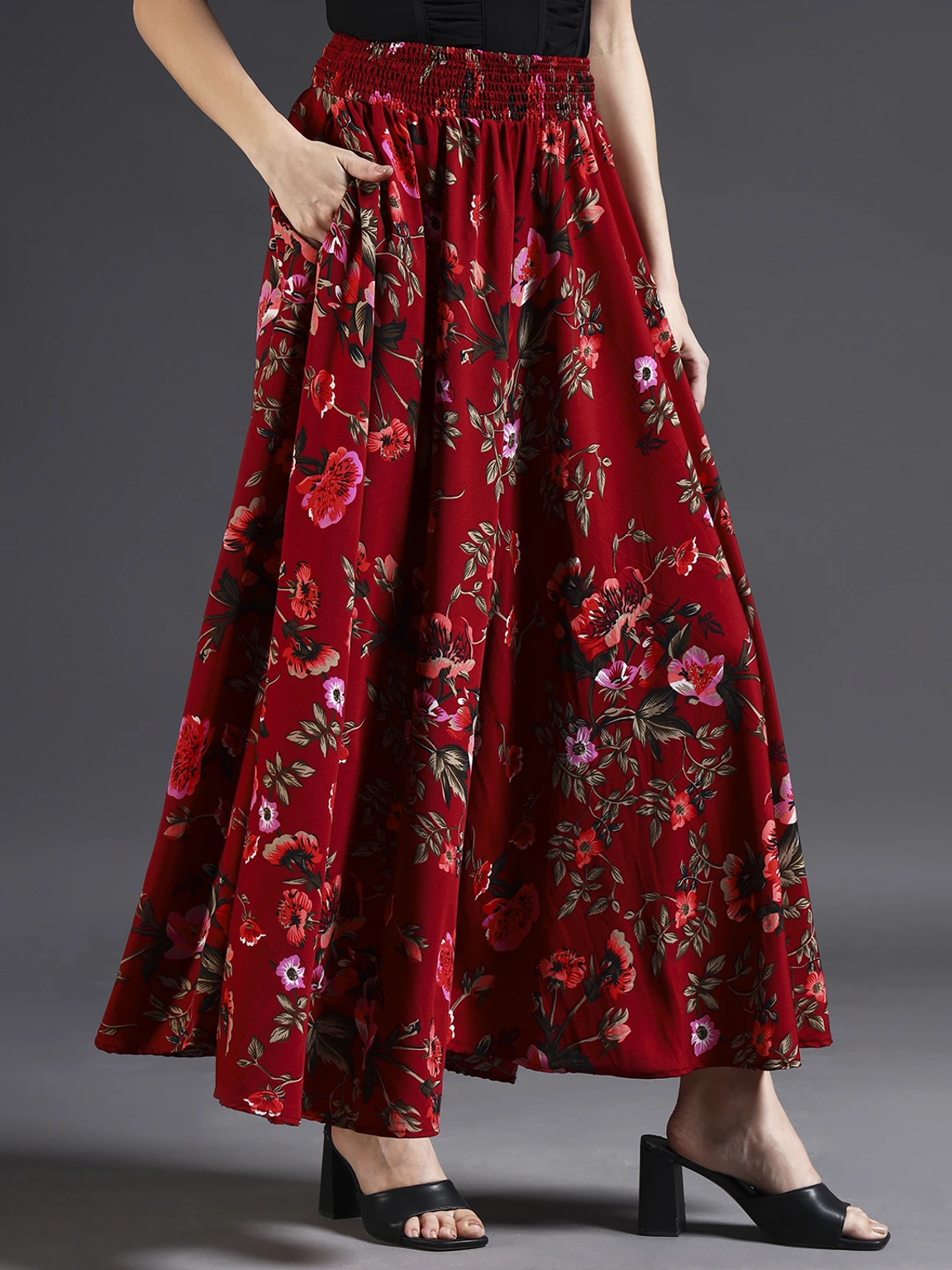 Women Flared Maroon, Green, Red Viscose Rayon Palazzos