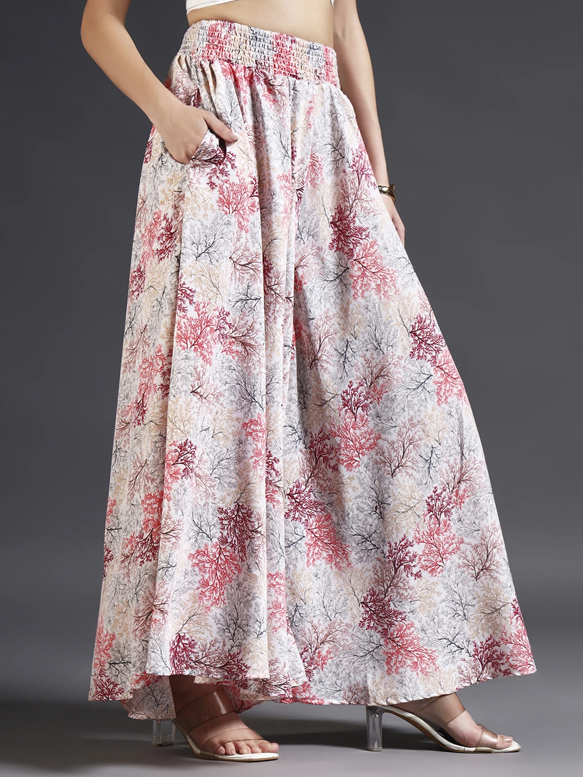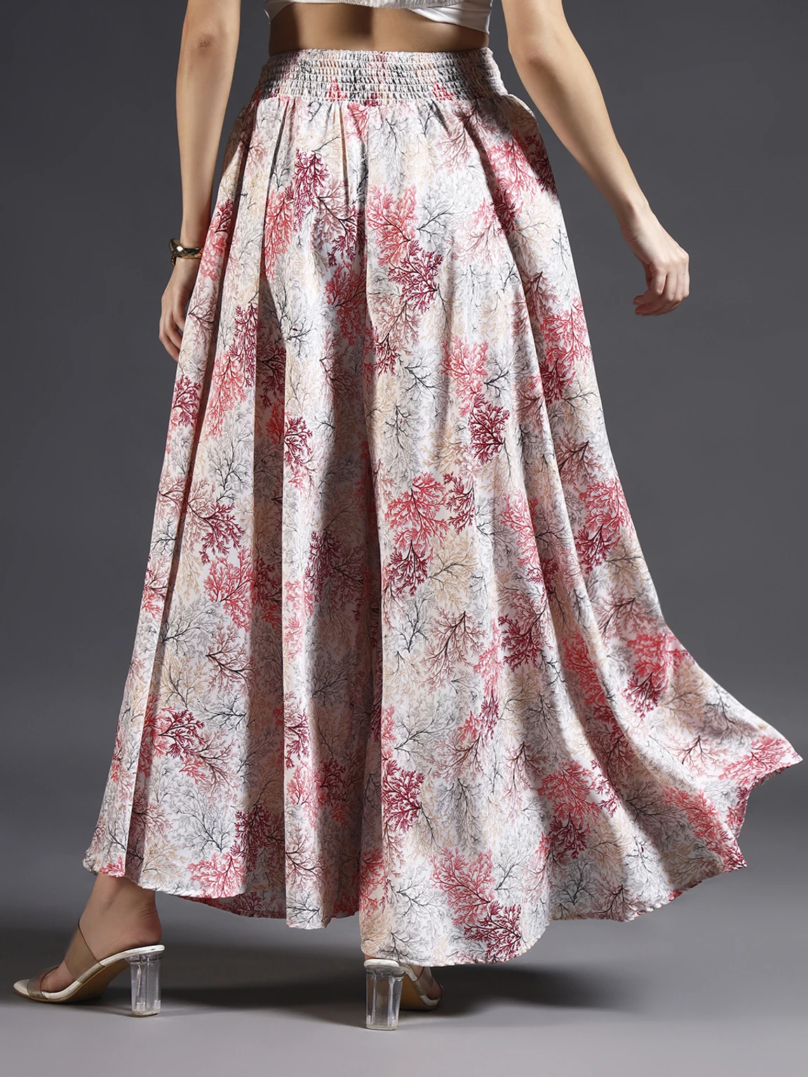 Women Flared Red, Brown, White Viscose Rayon Trousers